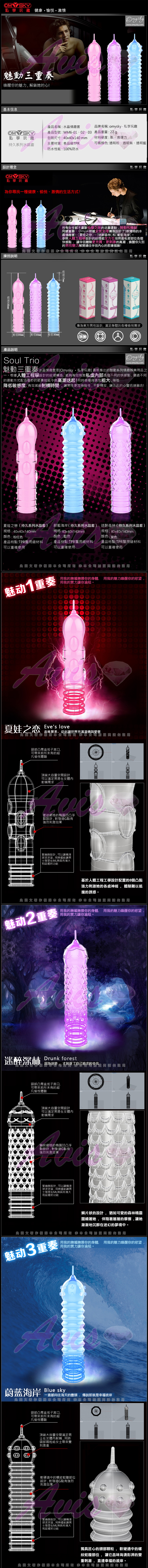.商品名稱:omysky 魅動三重奏 超薄款 迷醉森林 水晶凸狀加長套