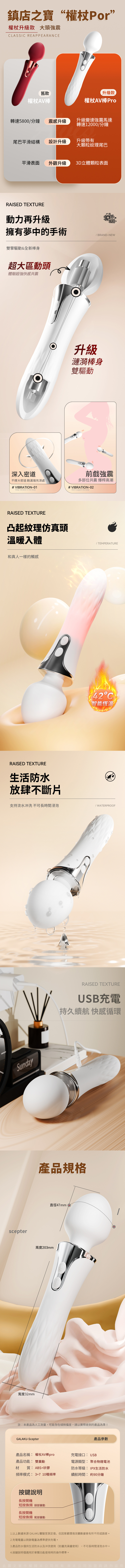 名稱:GALAKU 權杖Pro AV震動棒|單機版 白色